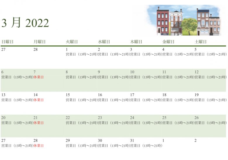 BioRosa横浜桜木町店の2022年3月の営業時日についてです。