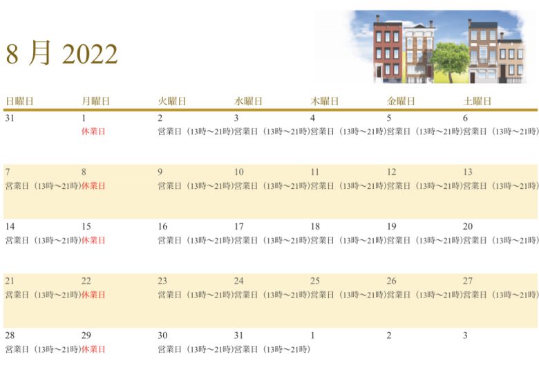 BioRosa桜木町店2022年8月の営業日程についてです。
