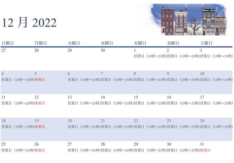 BioRosa桜木町店12月の営業日程についてです。