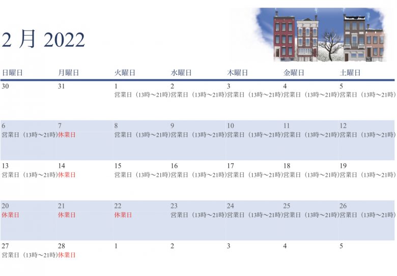 BioRosa横浜桜木町店の2022年2月の営業日についてです。