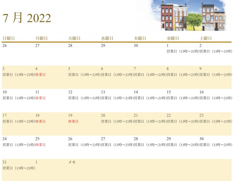BioRosa横浜桜木町店2022年7月の営業日程についてです。